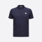 モンクレールのクラシックなブルーのネックラインの半袖ポロシャツ。