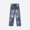 クロムハーツのウォッシュブルー、ブラック、ホワイトレザー装飾ストレートパンツ