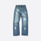 Chrome Hearts ウォッシュドブルーレザージーンズ - ホワイト&ブルー